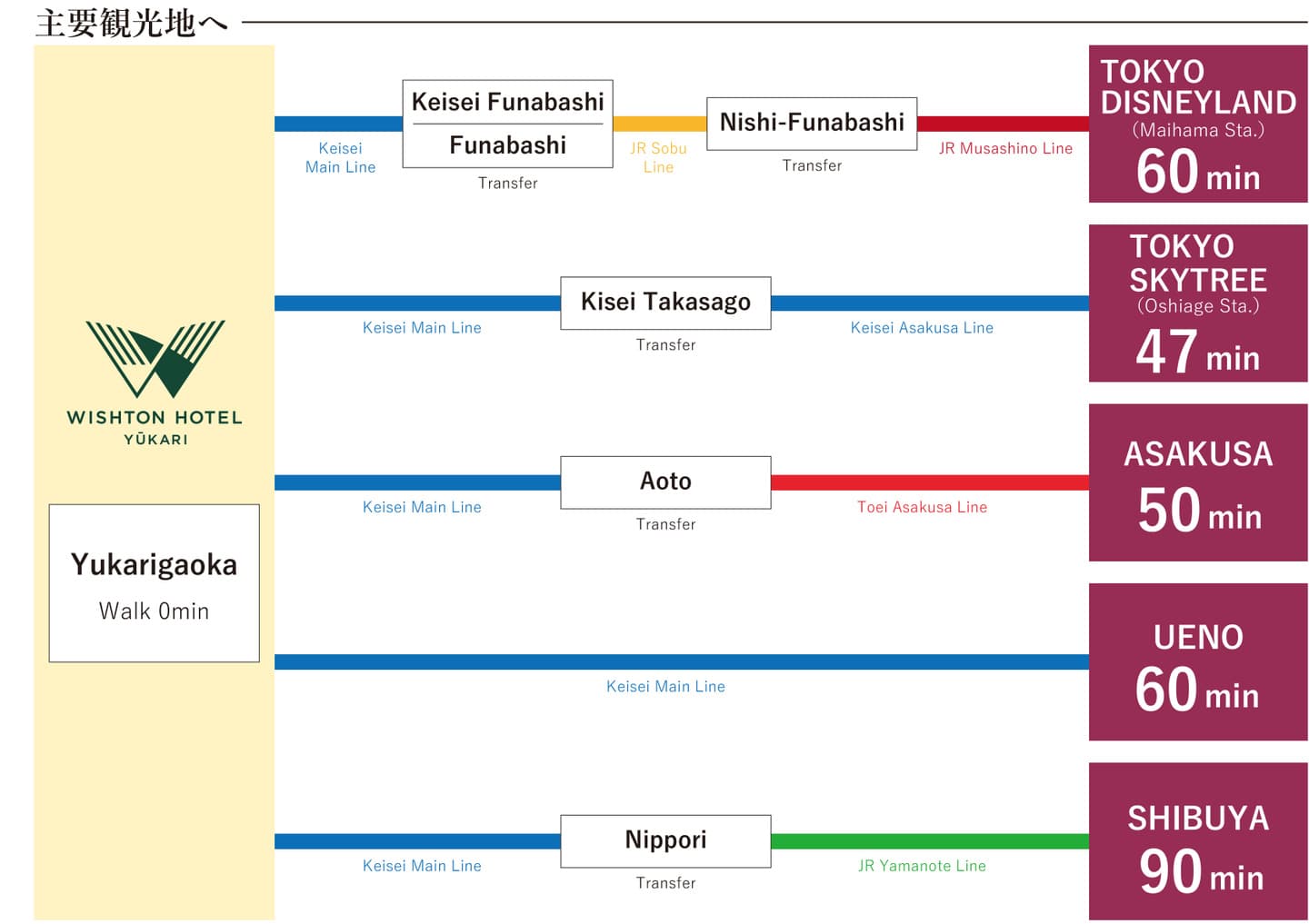 ●東京ディズニーランド 約60分 乗換2回